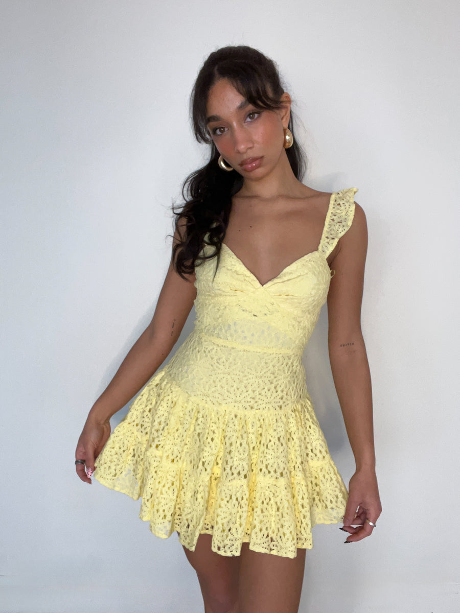 Get ready for a celebration in the Liliana Lace Mini Dress! This stunning dress features a lace design, v neckline, adjustable ruffle straps, keyhole front, and a tiered skirt. Available in white, pink, butter yellow, sky blue, and navy. Pair with your favorite to complete the look!
