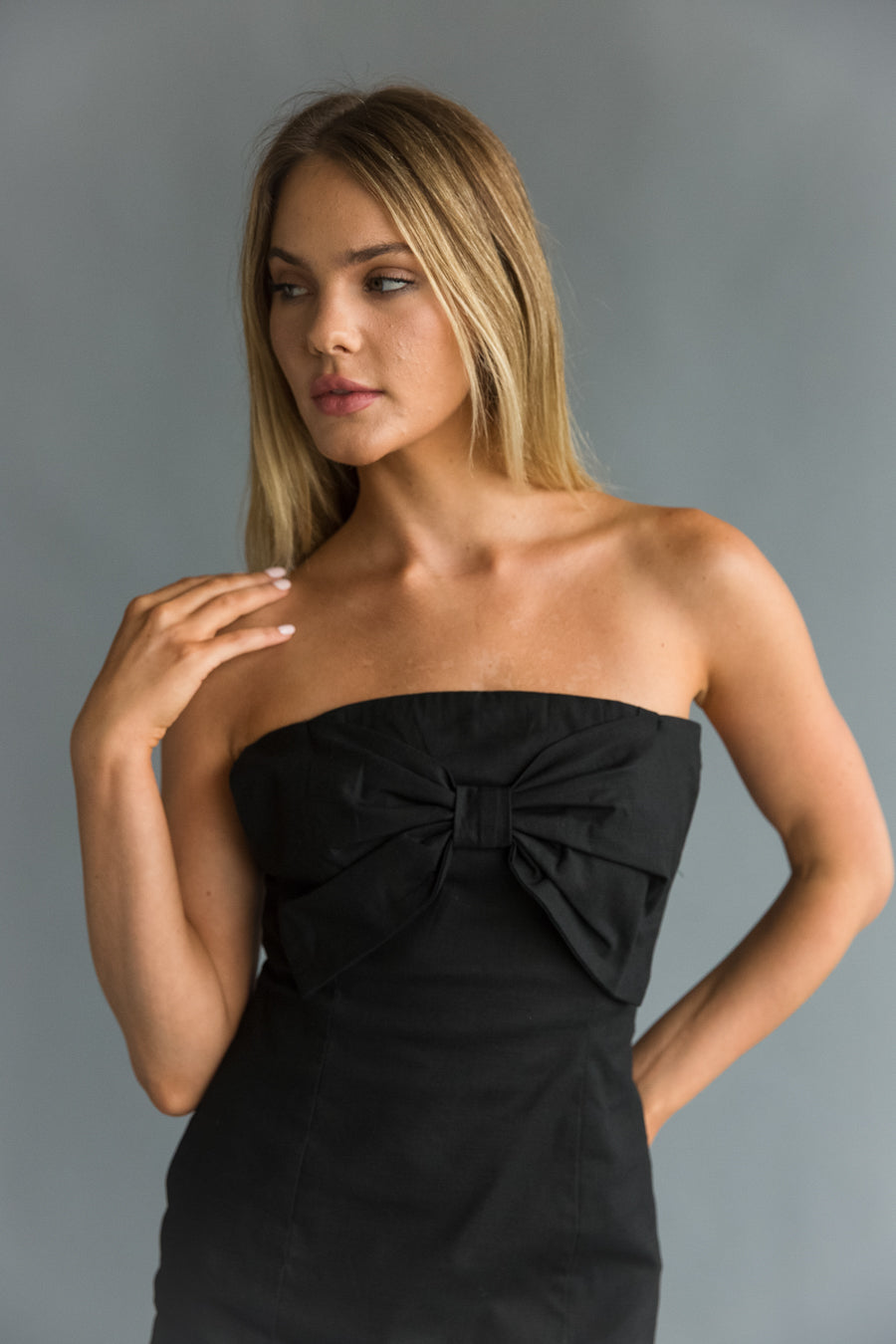 You'll be the star of the show in the Mina Strapless Bow Bodycon Mini Dress! This stunning mini dress features a straight across neckline, statement bow detail at the bust, and a mini side slit. Available in pink and white. Finish off the look with your favorite