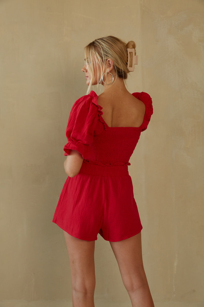 Spice up your outfit with the Ruby Smocked Puff Sleeve Crop Topp! This bright top features a square neckline, smocked bodice, and dramatic puff sleeves with a ruffle trim. Pair with the matching to complete the look!