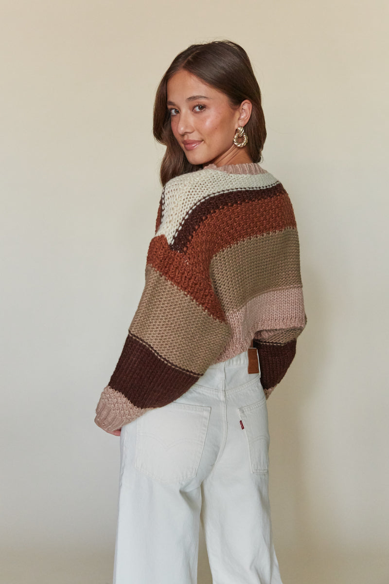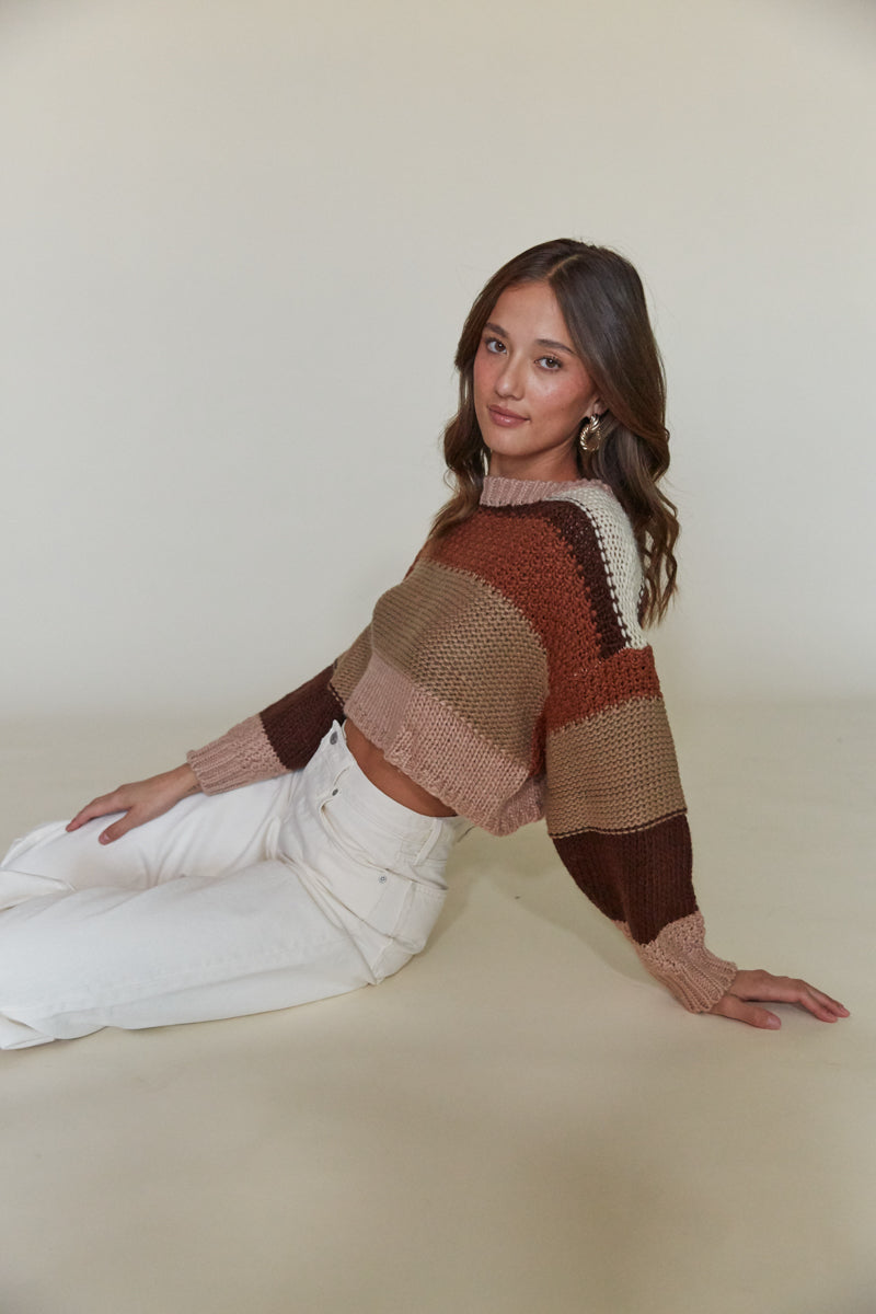 Make your days cozier with the Sheridan Cropped Striped Sweater! This cuddly knit top features a horizontal striped design, relaxed fit, long sleeves, and a scoop neckline. Pair with your favorite for the perfect comfy and casual look!