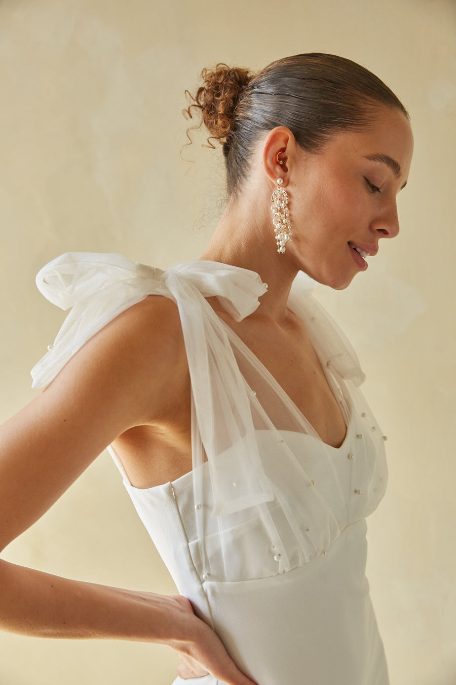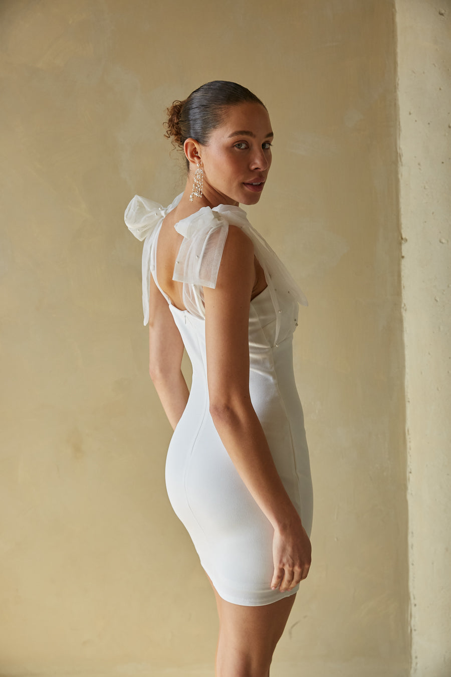 Make an entrance in the Tabitha Mesh Pearl Bodycon Mini Dress! This classy mini dress features a bodycon silhouette, sweetheart neckline, adjustable spaghetti straps, and mesh pearl tie strap overlays. Available in pink and white. Pair with a sleek to finish off the look!